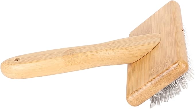- Material】Composed of flexible stainless steel needles and liners, the wool carding brush is softly resilient when brushing and are not easily worn or broken. The handle of the grooming comb is made of bamboo material, finely polished with smoothly curves.