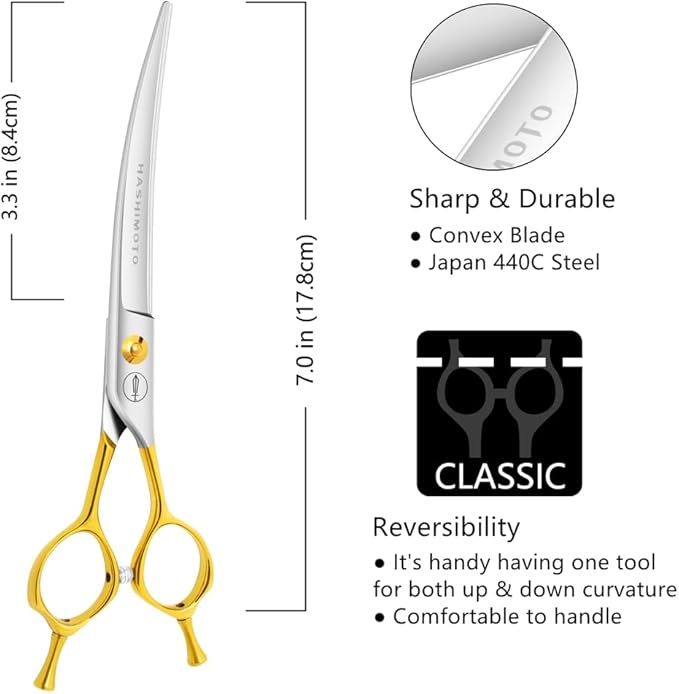 HASHIMOTO Curved Scissors for Dog Grooming, Light Weight, 7.0 inch, 30 Degree Curved Blade, Professional or DIY Use
