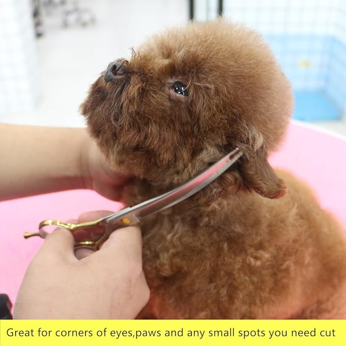 - 【Perfect for Detailing】-- With a 30-degree curved blade, these scissors are perfect for detailing around delicate areas like the eyes, face, legs, and paws, ensuring a precise and professional cut every time.The curve helps to get the harder to reach places that would be awkward with regular scissors.