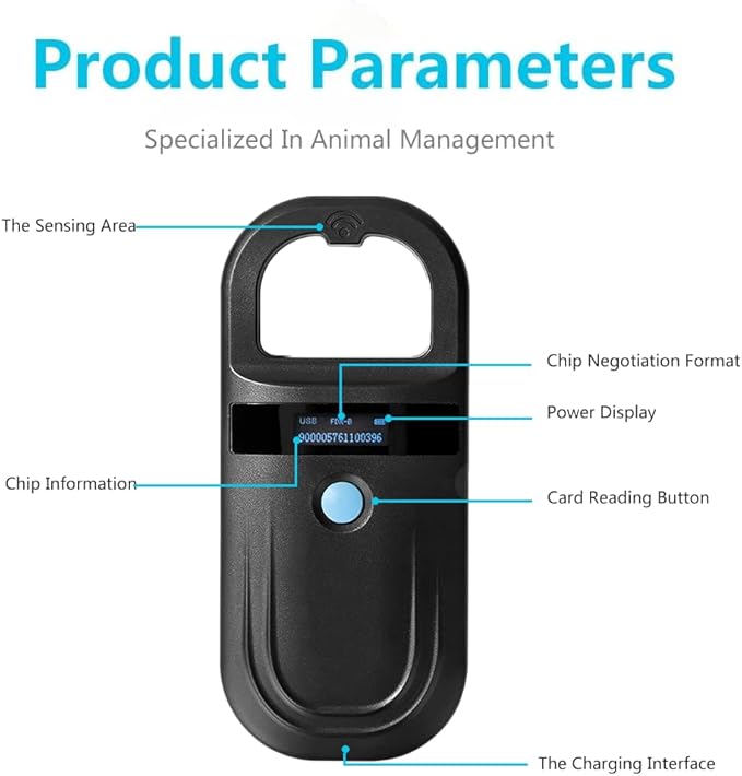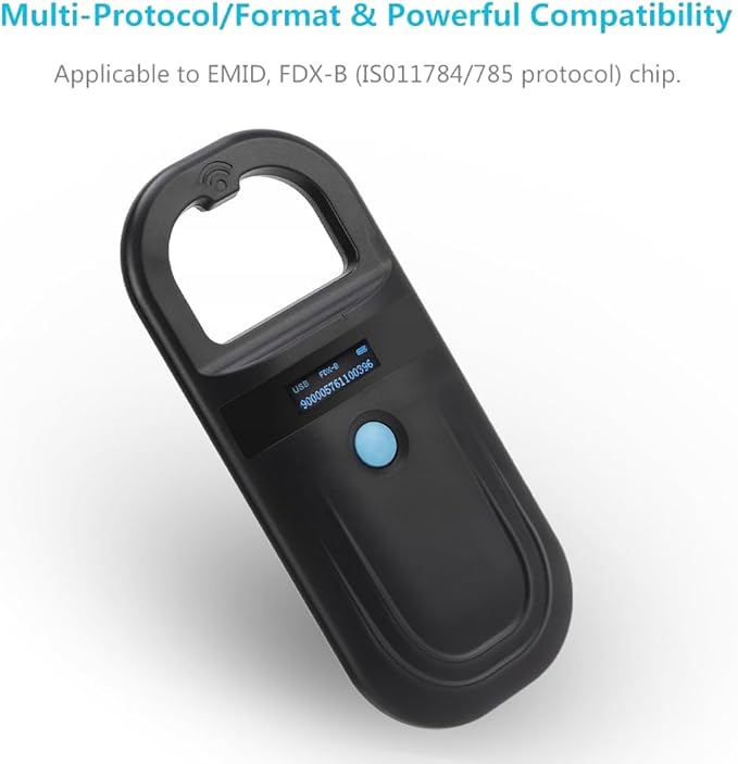- Pet Chip Canner: This is a low-frequency label scanner that uses wireless recognition technology, and the card reader cannot read the Avid chip. Unable to recognize a 9-digit ID. Only international standard protocols with 15 digits can be recognized. The dog microchip adopts wireless recognition technology and supports reading FDX-B (ISO11784/11785) and EMI microchips(Cannot read the Avid chip)