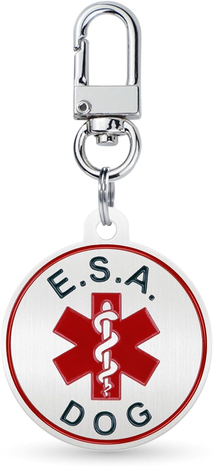 Service Dog ID Tag for Small & Large Dogs - Emotional Support ESA Medical Alert Collar Accessory - Durable Stainless Steel Service Animal Tag - Classic ESA Service Tag in Silver Large