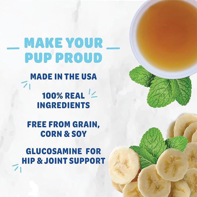- Whole Ingredients: These yummy treats are made with real banana and chicken bone broth. Free from grain, corn, and soy while still loaded with wholesome ingredients. Dogs of all ages, sizes, and breeds can enjoy!