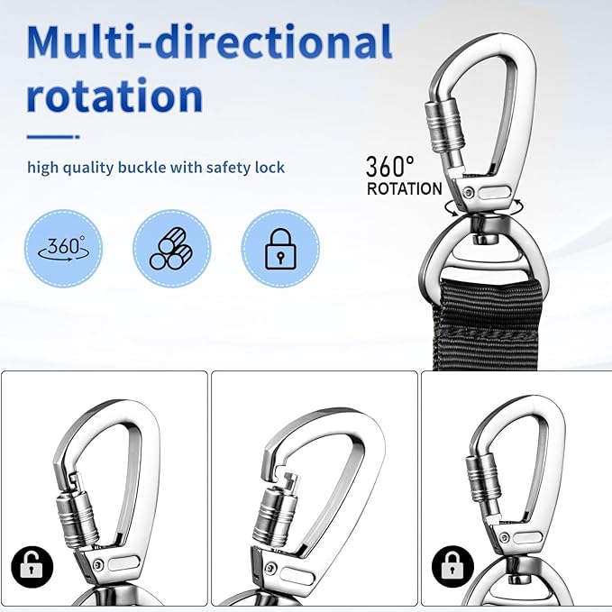 - Sturdy Metal Clasp: This tactical dog leash with 360° rotating locking clasp, it can be attached to dog vest or collar. The sturdy metal clasp is safe and secure. It will ensures the leash tangle-free and prevent accidental detachment, ensuring the safety of you and your dog.