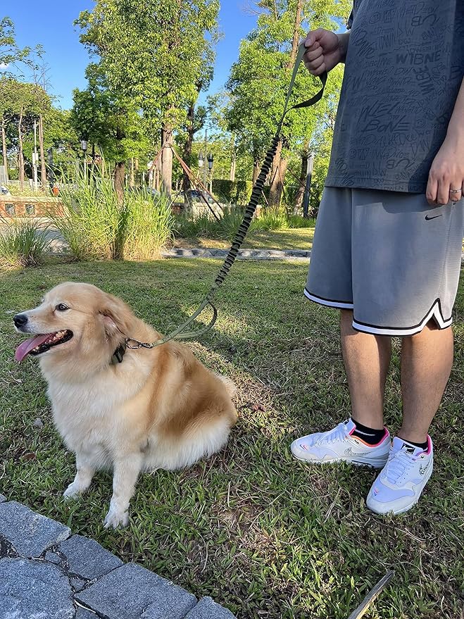 - Shock Absorbing Dog Leash: Bungee dog leash with 2 shock absorbers can extend to 3 FT to 4.9 FT, will absorb tension and stress from your dogs, up to 150lb. It will absorb shock and reduce the risk of getting hurt, providing a more comfortable walking experience.