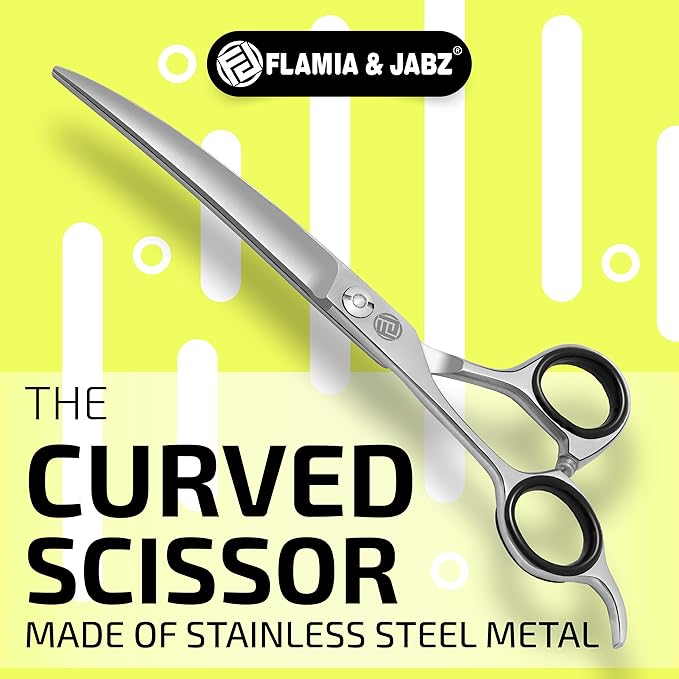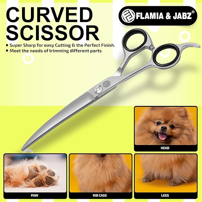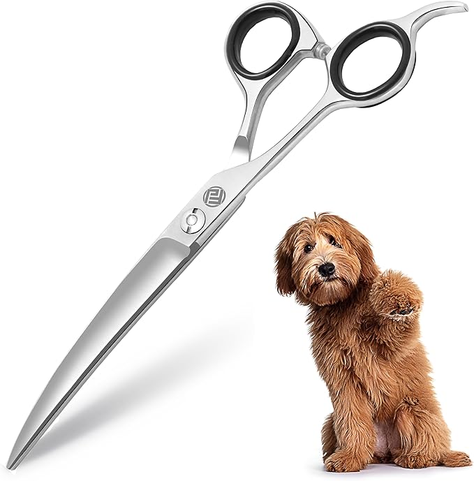 Professional Dog Grooming Scissors/Shears, Curved, for Dogs, Cats & Pets (Right Handed, Stainless Steel 7.5 Inch)
