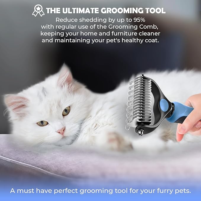 Undercoat Rake for Dogs & Cats, Dematting Comb with Extra Wide Double-Sided Stainless Steel Teeth for Detangling, Deshedding, Brushing, Thinning & Removing Shed Fur, Knots, Mats, and Tangles in Pets
