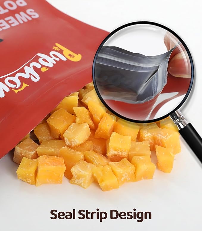 • 【Great for Teeth Health】The firm texture of sweet potato cubes can help promote teeth health by gently scraping away plaque and tartar buildup from your dog's teeth as they chew. Regular chewing can contribute to fresher breath and healthier gums