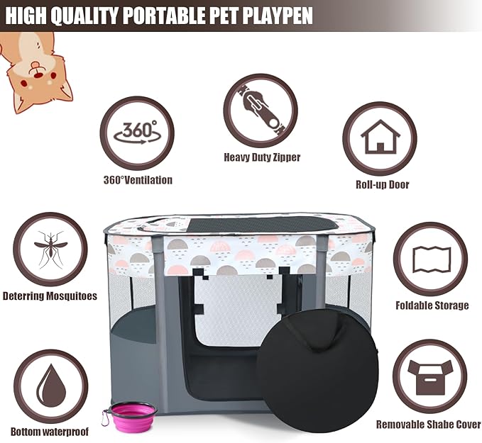 - 🐶QUALITY SERVICE:We attach great importance to customer experience,if you find any problem with the portable pet playpen,please contact us in time,I will reply you as soon as possible,and provide you with instructions and free return service.Your satisfaction makes us purpose.