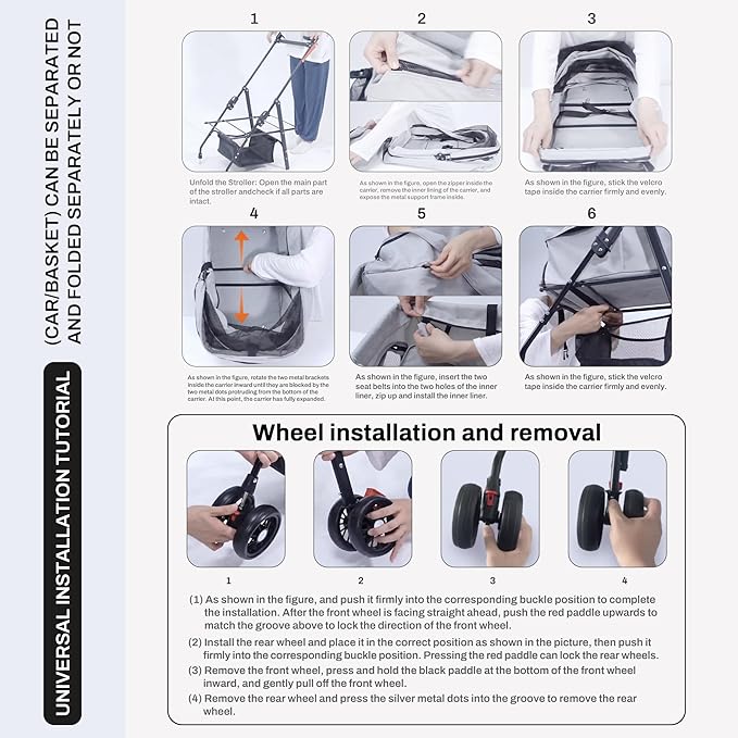 - 【Useful Storage Design】We have designed storage bags for the pet stroller, located below the basket and at the back of the stroller storage bag, you can put dog food and pet water cups in the storage bag, providing more convenience for pets' travel