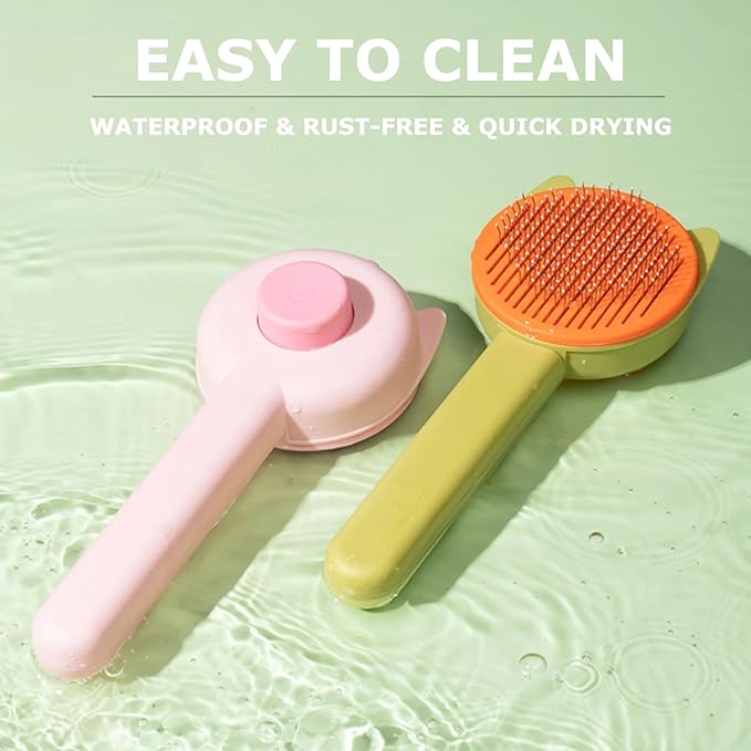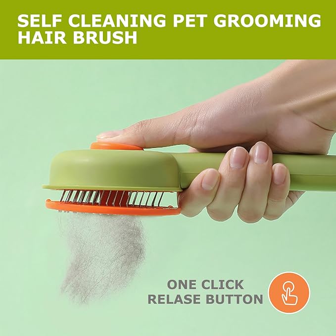 - 【One Touch Cleaning Pet Brush】 After brushing your pet, simply click the button to separate the brushed hair from the metal pins and wipe away the hair. The easy one-touch cleaning button saves time and makes cleaning the brush more convenient.