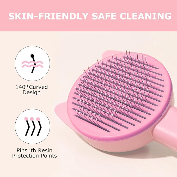 - 【One Touch Cleaning Pet Brush】 After brushing your pet, simply click the button to separate the brushed hair from the metal pins and wipe away the hair. The easy one-touch cleaning button saves time and makes cleaning the brush more convenient.
