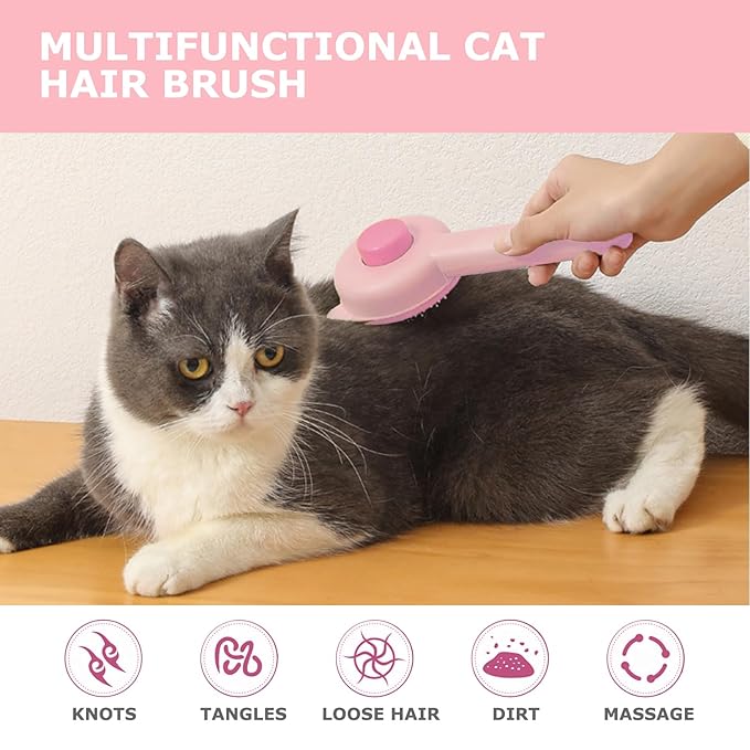 - 【Safety & Washable & Durable】 The cat hair brush is made of abs plastic and stainless steel pins. Harmless to lick, supports full body cleaning and prevents static electricity. The handle of the cat hair brush is designed to be comfortable and ergonomic with a non-slip texture to reduce hand pressure.