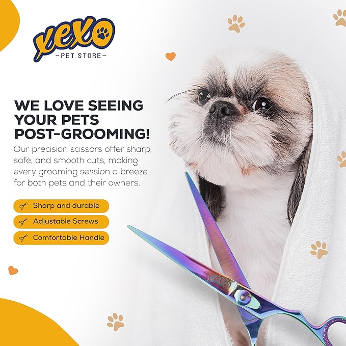 - ⚠️ Safety First: Your pet's safety is our top priority! With our straight scissors, you can groom with peace of mind, knowing that sharp blades effortlessly glide through fur without any pulling or snagging. Say hello to stress-free grooming sessions and goodbye to accidental nicks or cuts.