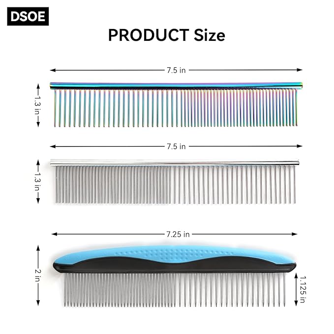 • Dual-Density Design: The combs include both wide and fine teeth. The denser part is perfect for grooming sensitive areas like the eyes, ears, and legs, while the sparser part efficiently detangles and fluffs your pet's coat. The polished, rounded tips prevent skin irritation, making grooming a breeze