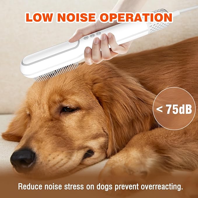 - 【Powerful Blow Force & Low Noise】The pet hair dryer with high-speed brushless motor with a speed of up to 106,000 rpm, while ensuring safety, it can minimize noise and avoid strong noise that makes pets scared and uncomfortable.