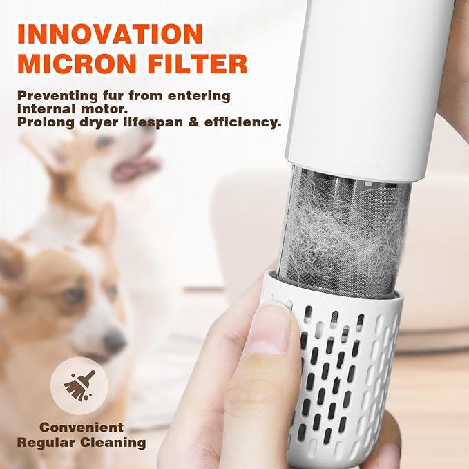 - 【Light Weight Considerate Design】The Portable Handheld Pet Grooming Hair Dryer is only 0.88 pounds, suitable for full body care of small and medium dogs, and also suitable for daily spot care of all dog breeds. Such as feet, tails, etc., it is small, does not take up a lot of space, and can be used at any time, A removable filter at the bottom of the machine can better prevent dust.