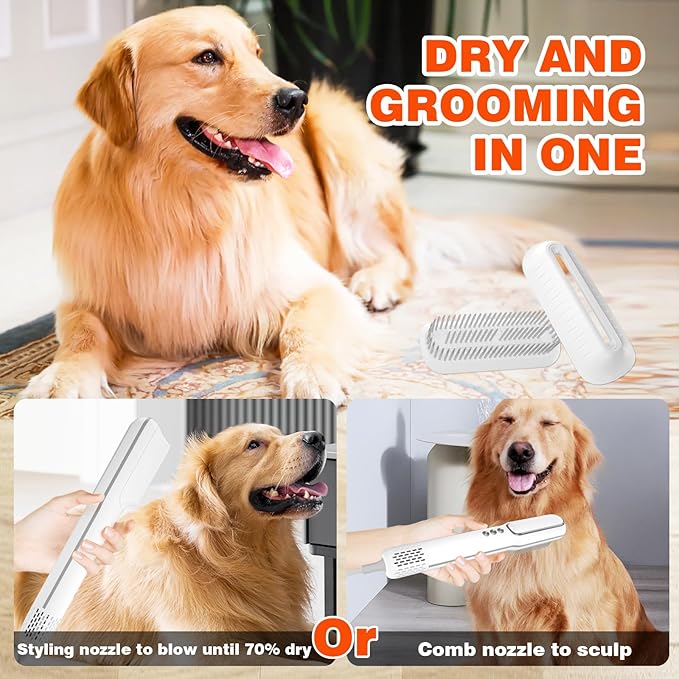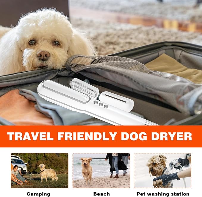 - 【Packaging & Warranty】 1 portable pet dog dryer, 2 Nozzles, 1 cloth bag and 1 user manual. We provide a 12-month simple warranty and replacement, if you receive any problems with the pet grooming dryer, please feel free to contact us, We are at your service 24 hours a day.