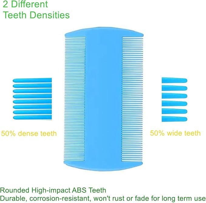- THOUGHTFUL SET: Our pet grooming comb set includes 5 different kinds of flea combs, 2 tooth comb, 1 double sides lice comb, 1 long-needle & 1 short-needle comb to meet different needs. Perfect for straightening out the knotted tangles hair, as well as finishing and fluffing.