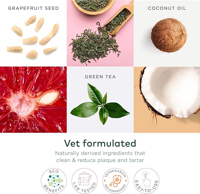 - DOG SAFE FORMULA- Our dog dental care wipes enriched with a natural blend of Coconut Oil, Green Tea, and grapefruit seed, ensure safe and gentle teeth cleaning. Ideal for dog tooth brush alternatives!