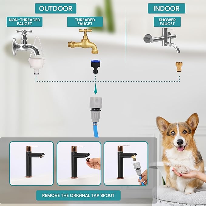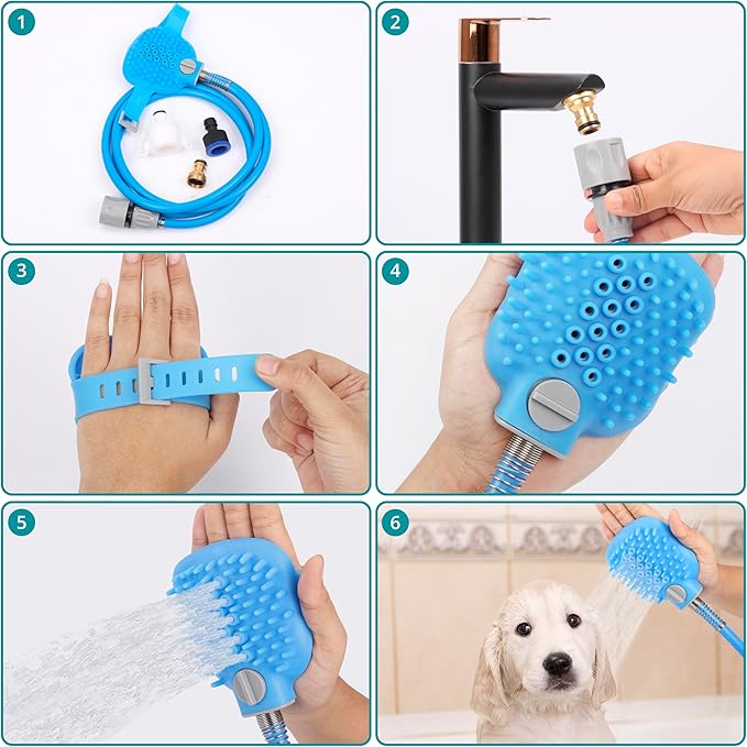 - ALL-IN-ONE GROOMING TOOL: Enhance the grooming experience of your pets with this all-in-one grooming tool. Our grooming hose combines the features of a scrubber, bathing brush, massager and shower head into one bathing/washing solution for dogs and cats.