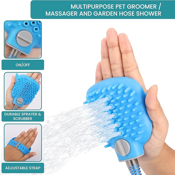 Dog Bath Hose Sprayer and Scrubber Attachment - Indoor/Outdoor Pet Bathing, Grooming and Washing - Pet Shower Brush with Garden Nozzle