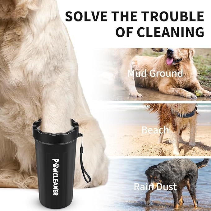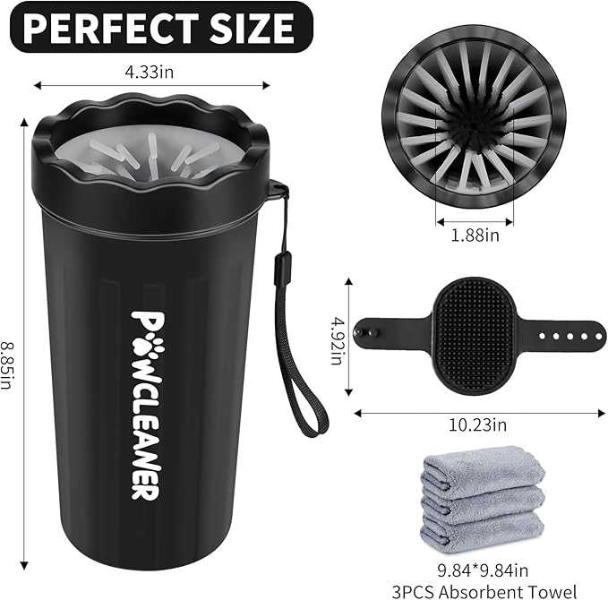 - 【Easy to Use】To clean your dog's paws with the dog foot cleaner, just put the muddy paws into the cup and twist it a few times. Wipe with the matching towel after cleaning to prevent wet dog paws from dirtying the floor.