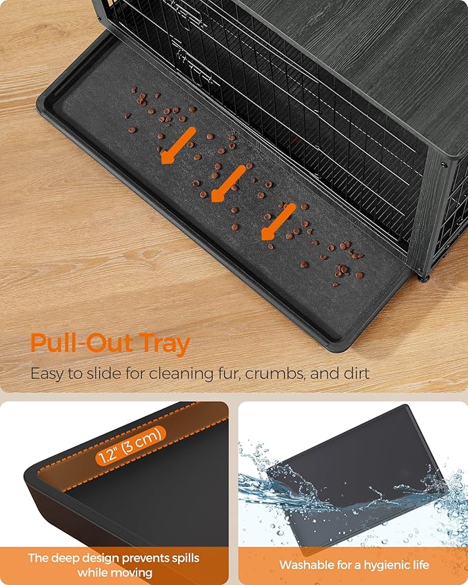 - [Sturdy and Chew-Resistant] Made with durable particleboard and steel, this piece of dog furniture is sturdier and more chew-resistant than wooden dog crates, offering a lasting, stable, and safe retreat for your fur friend