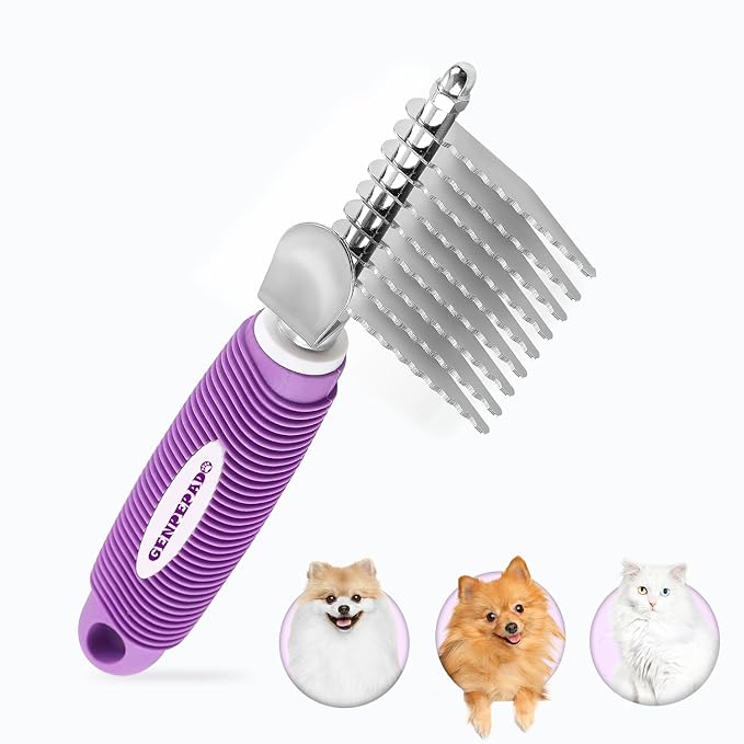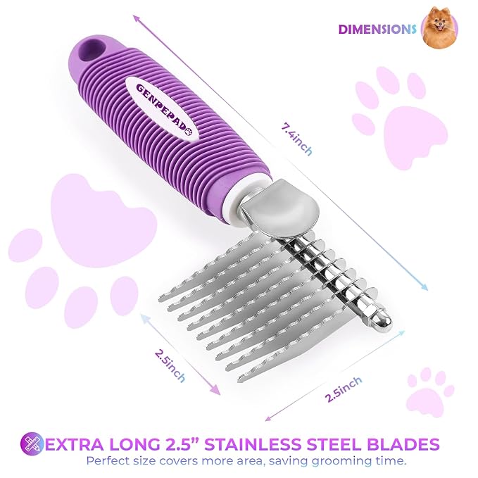 - Easily Tackle Nastiest Knots!: Designed with extra long stainless steel 2.5-inch serrated blades can reach deep into thick fur to effortlessly remove stubborn mats and tangles without painful pulling. This pet rake is perfect for undercoat brushing.