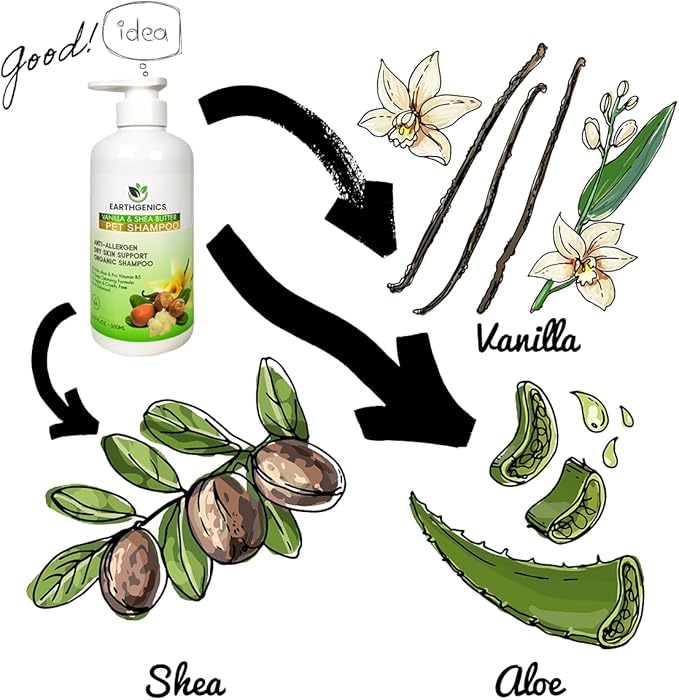 - Vanilla: Provides a pleasant scent which can make the bathing experience enjoyable for both the pet and the owner. Vanilla also has soothing properties. While primarily known for its pleasant scent, vanilla can also have soothing properties for the skin.