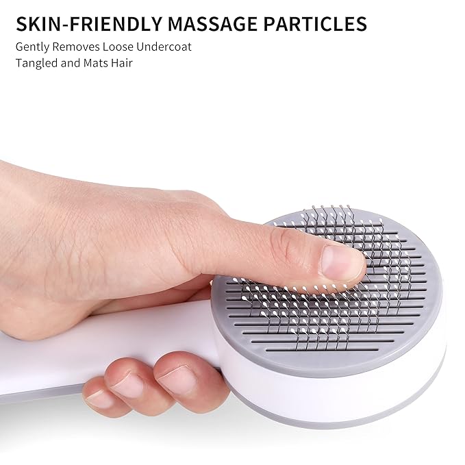Self Cleaning Slicker Brush for Cat or Dog, Pet Grooming Brush for Long or Short Hair, Dog comb For One Button Gently Removes Loose Undercoat and Shedding Hair (Gray-Only Brush)