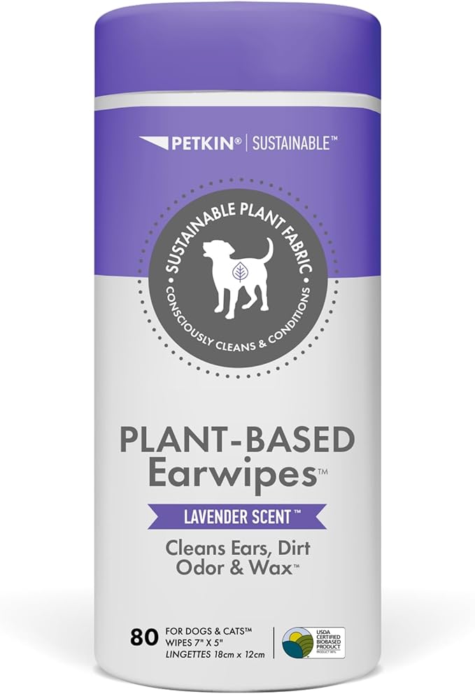 - Petkin Plant-Based Ear Wipes For Dogs and Cats - These wipes are made with a thick and strong, USDA Certified Biobased fabric - NO synthetic materials used. So you can care for your pet while caring for the planet. Includes 1 pack of 80 wipes.
