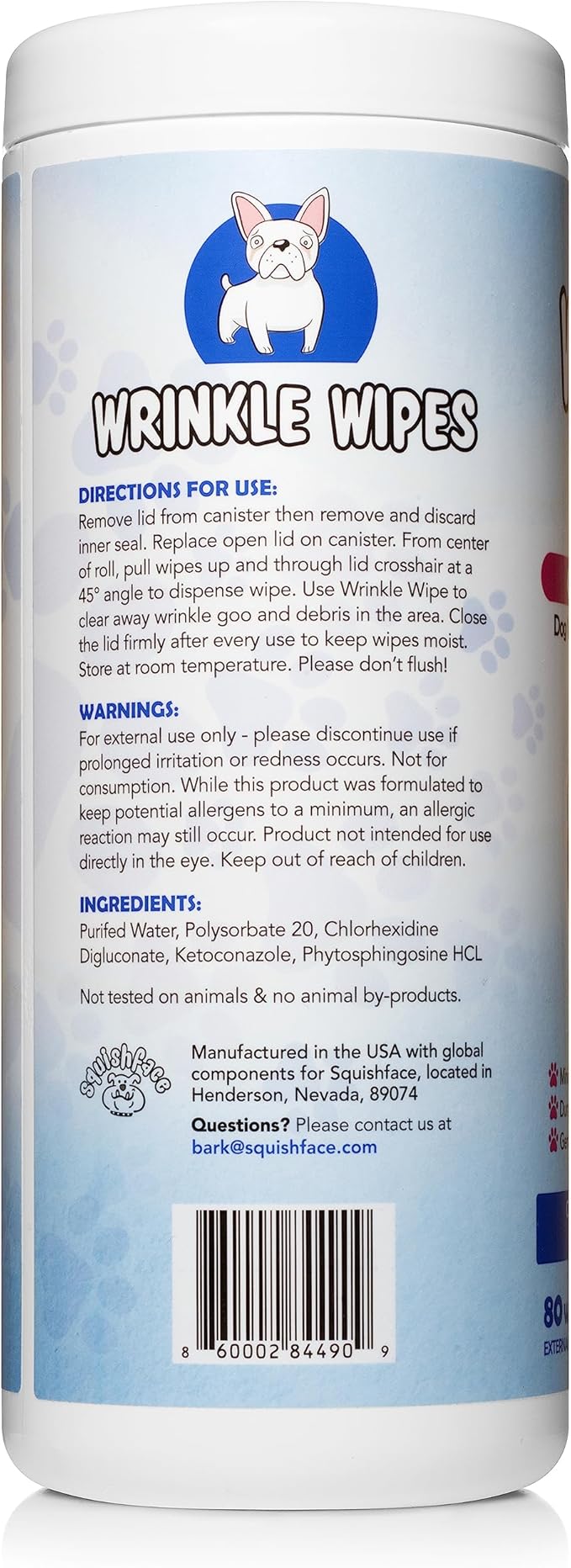 Squishface Wrinkle Wipes + Dog Ear Wipes Bundle - for Dogs with Wrinkles, Tear Stains, Tail Pockets, Irritated Paws & More - Great for All Breeds!