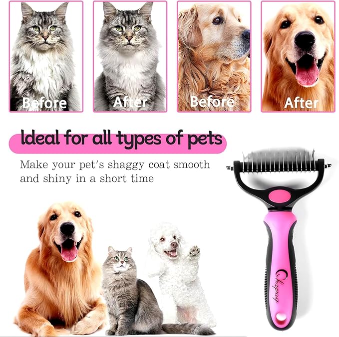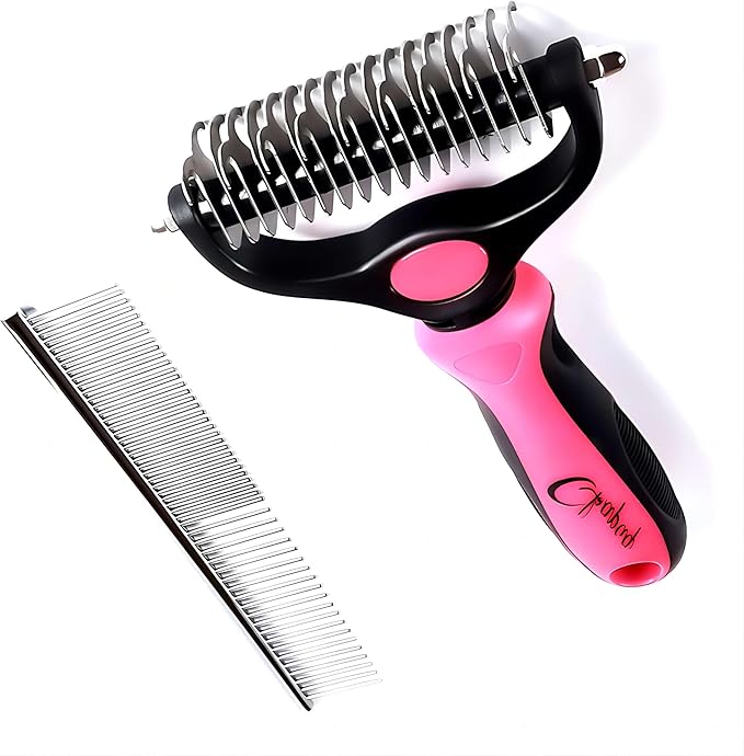 Pet Grooming Brush and Metal Comb Double Sided Long Hair Pet Undercoat Cleaner Brush for Dogs and Cats Removes mats and lint Effectively removes carpet shedding or flyaway hair.(Pink)…