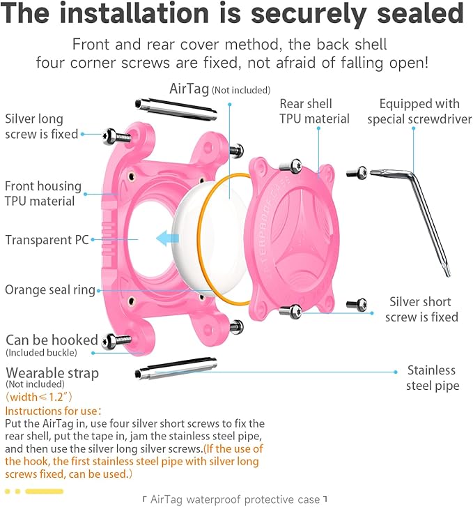 - 【Comfortable & Durable Dog Airtag Holder】 Airtag holder for dog collar With 5 special screws to close, Silicone sealing ring in the middle, the air tags will never fall off from the holder. This air tag dog collar holder is firm and sealed, with anti-theft.