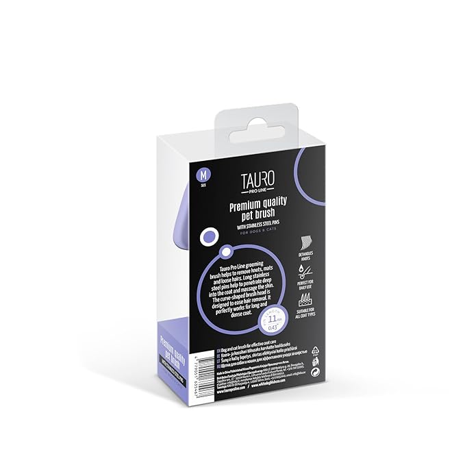 - COAT CARE - The Tauro Proline grooming brush ensures easy grooming for both dogs and cats, thanks to its soft and flexible cushion. The stainless steel teeth glide gently through both short and long hair coats, ensuring a pain-free grooming session every time.