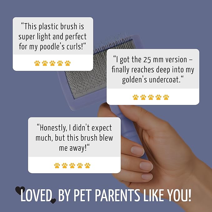 - Calms Sensitive Or Nervous Pets: Cushioned base and gentle pin motion make this perfect for anxious pets; trusted in your routine dog grooming tools or as a soothing cat brush