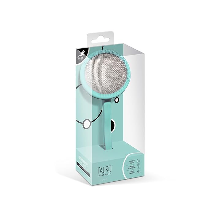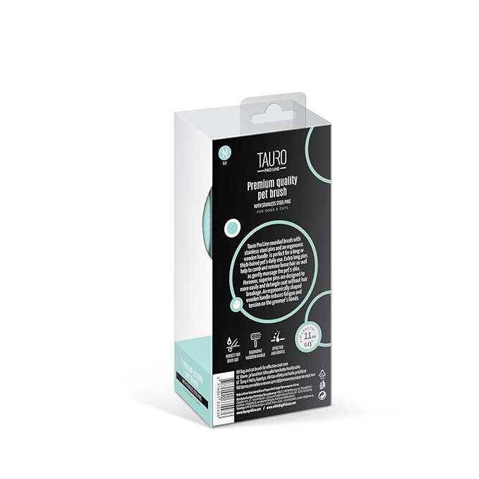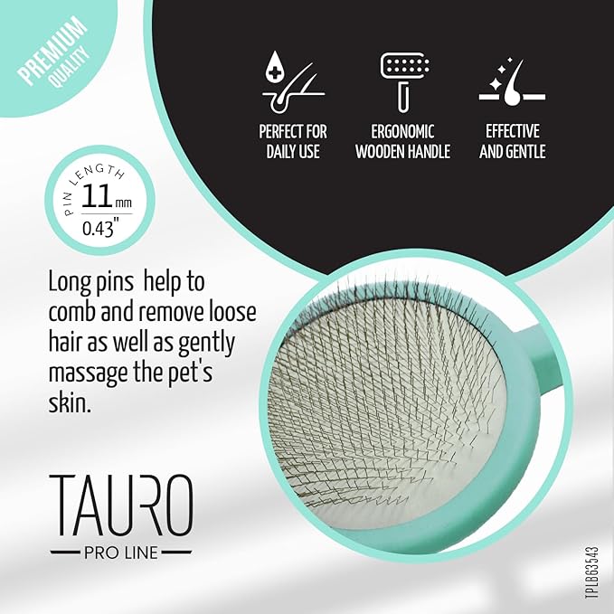 - COAT CARE - The Tauro Proline grooming brush ensures easy grooming for both dogs and cats, thanks to its soft and flexible cushion. The stainless steel teeth glide gently through both short and long hair coats, ensuring a pain-free grooming session every time.