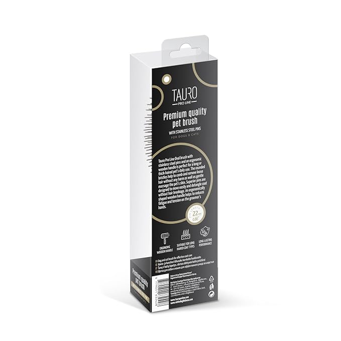 - COAT CARE - The Tauro Proline Wooden Massage Brush ensures a comfortable grooming experience for pets, thanks to its soft, flexible cushion. Each bristle is securely embedded to prevent fallout during brushing, making grooming safe and efficient.