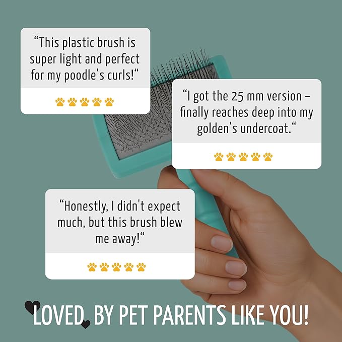 - Grooms Without Causing Stress: Soft-cushioned pins glide through knots and fluff without pulling; ideal for sensitive pets or those needing a gentle cat brush for shedding or pet grooming brush
