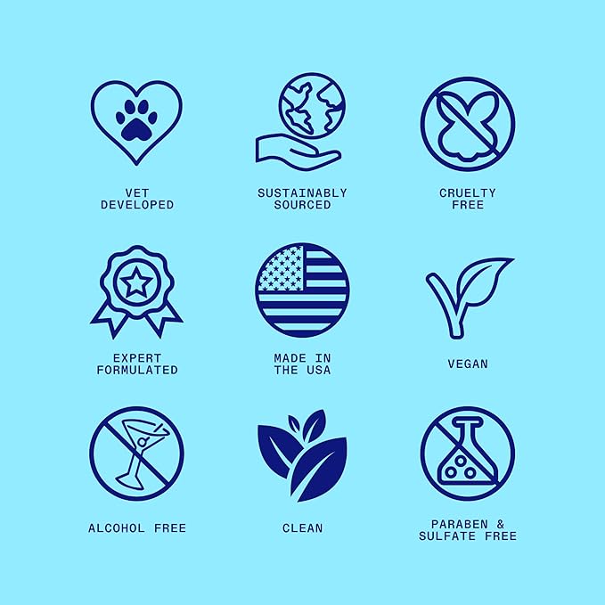- Clean & sustainably sourced: Made with the safest ingredients. Non-toxic, vegan, cruelty-free, pH balanced for dogs, no harsh chemicals, alcohol-free, paraben & sulfate-free, sustainably-sourced and made with love in the USA.