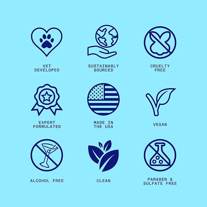 - Clean & sustainably sourced ingredients: Made with the safest ingredients. Non-toxic, vegan, cruelty-free, pH balanced for dogs, no harsh chemicals, alcohol-free, paraben & sulfate-free, sustainably-sourced and made with love in the USA