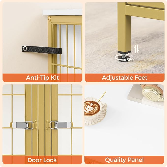 - Firm Construction: This indoor dog kennel is made of high-class and durable panels and metal. The top panel can undertake up to 160 lb and the internal shelf 80 lb, providing a durable, stable, and secure resting place for your furry friend