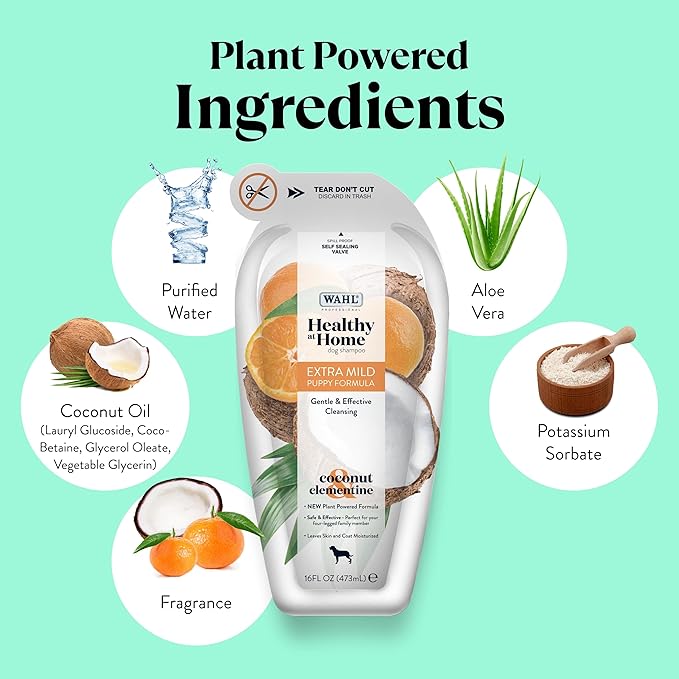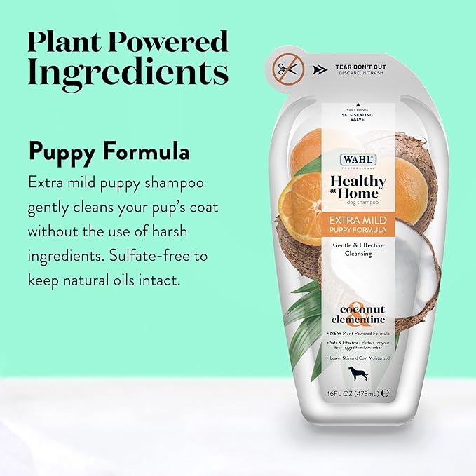 Wahl Professional Animal Healthy at Home Dog Shampoo - Plant Powered Grooming Shampoo - Puppy Formula