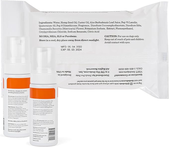 The Dodo All-in-One Dog Grooming Kit, Includes No Rinse Bath Foam, Wipes, and Wet/Dry Brush; Vegan, Cruelty-Free and Contains no DEA, MEA, SLS or Parabens