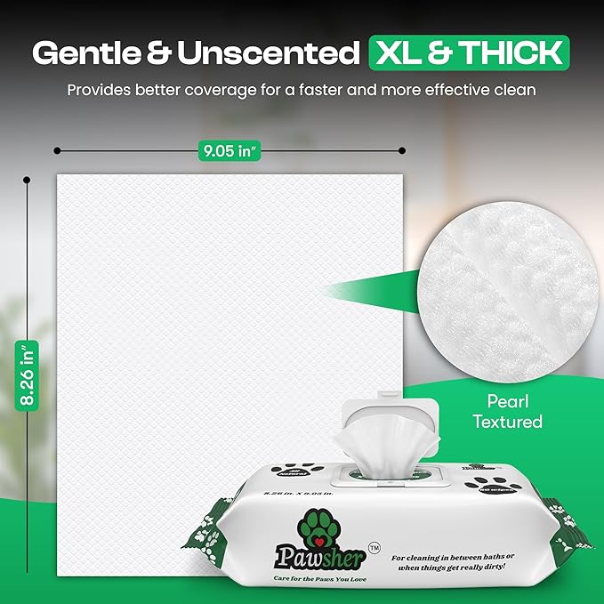 - GENTLE DOG WIPES FOR CLEANING & DEODORIZING: Infused with soothing aloe extract and purified water, our XL, unscented dog wipes for paws and butt offer gentle yet effective cleaning, removing dirt and odors (80 count).