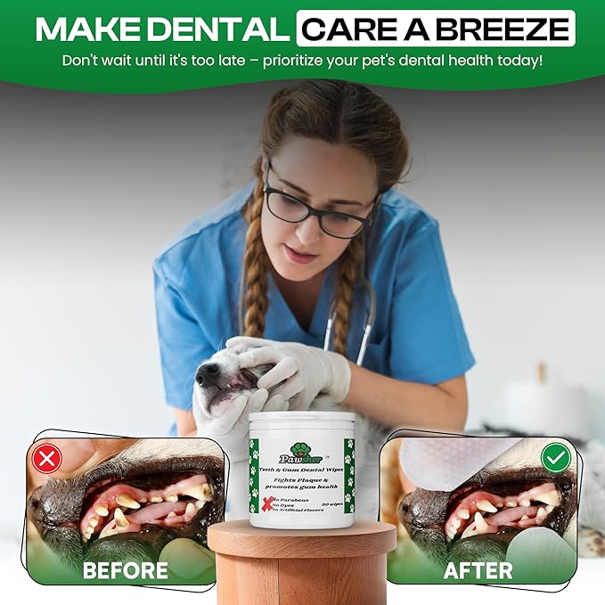 - WHITER TEETH, FRESHER BREATH: Our dog teeth cleaning wipes, enriched with aloe, vitamin E, and coconut oil, gently and effectively remove tartar buildup and promote healthy gums to maximize your dog’s dental care (50 count).