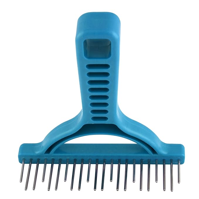 The Untangler Rakes for Grooming and Shedding -silky smooth rotating teeth to easily collect loose hair (Blue, Shedding)