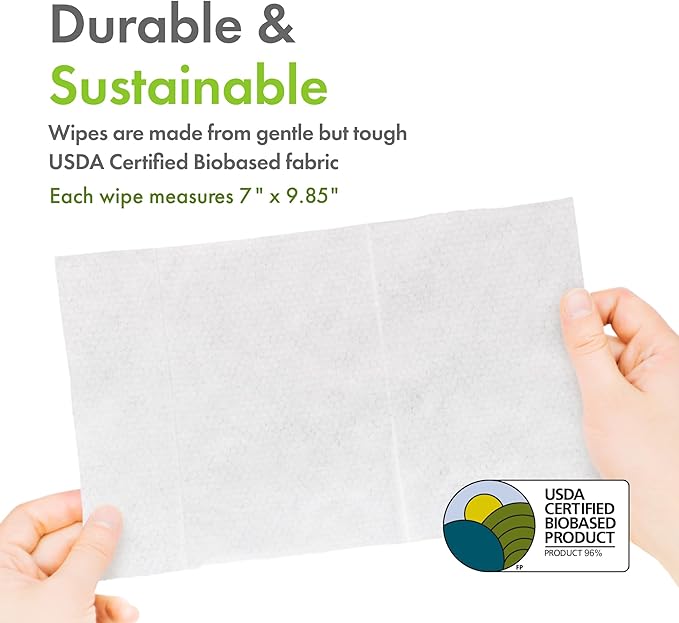 - Consciously Cleans - These durable and sustainable plant-based wipes are Big n’ Thick and measure 7 x 9.85 inches, allowing you to quickly clean and deodorize your entire pet. No water or rinsing required so it's easy for you and good for the planet.
