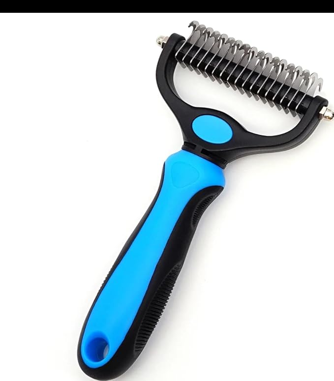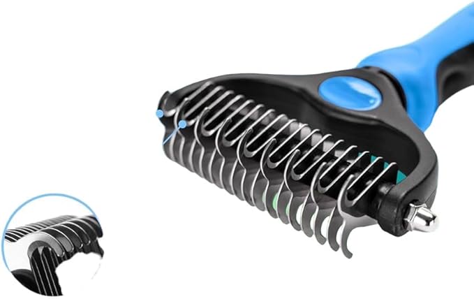 - EASY TO USE & SAFE FOR PETS: The blades rake brush for dogs and cats are rounded to gently massage your pet while removing loos hair. Made with rubber handle and stainless steel on brush sides. Its convenient grooming tool to use along coated breed.