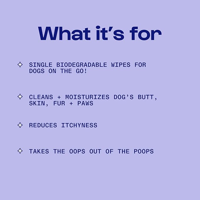 - On-the-go dog wipes: Sh*t happens. Keep it classy and hygienic with our biodegradable wipes for cleaning up on-the-go.